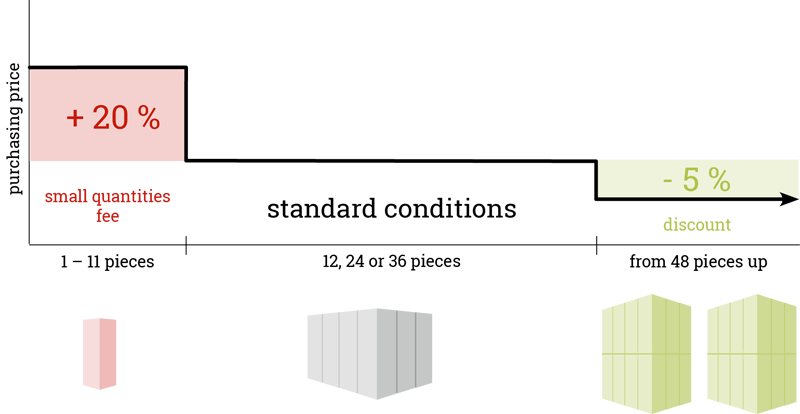 - Standard shipping from an order value of € 500: € 7.10 per delivery